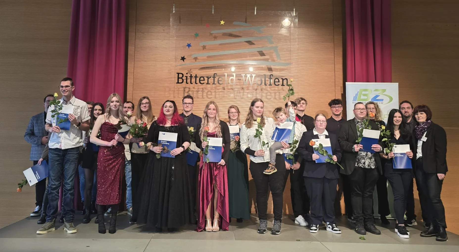 Im Rahmen der feierlichen Freisprechung am 30.01.2026 wurden 62 Absolventinnen und Absolventen des Bildungszentrums Wolfen-Bitterfeld e. V. offiziell in das Berufsleben verabschiedet. In ihren Grußworten betonten, der stellvertretende Landrat Volker Krüger, Oberbürgermeister Armin Schenk sowie Steve Ziesche, Vorstandsmitglied des Bildungszentrums Wolfen-Bitterfeld e. V., ausdrücklich den hohen Stellenwert der Verbundausbildung für die regionale Fachkräftesicherung. Sie hoben die enge Zusammenarbeit von Bildungseinrichtung, Ausbildungsbetrieben und öffentlicher Hand als wesentlichen Erfolgsfaktor hervor und unterstrichen die Zukunftsbedeutung der beruflichen Bildung für die Region.