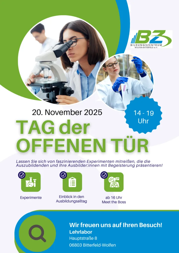 Am 20. November 2025 öffnen wir die Türen unseres Lehrlabors und laden herzlich zum Tag der offenen Tür ein!