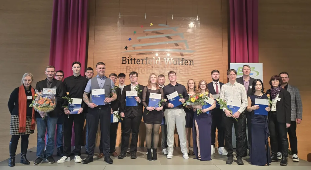 Mit einer feierlichen Veranstaltung im Städtischen Kulturhaus Wolfen hat das Bildungszentrum Wolfen-Bitterfeld e. V. am 30. Januar 2026 62 Auszubildende aus MINT-Berufen offiziell freigesprochen. Gemeinsam mit Vertreterinnen und Vertretern aus 36 Ausbildungsbetrieben, Ausbilderinnen und Ausbildern, Familienangehörigen sowie Gästen wurde dieser bedeutende Meilenstein gewürdigt.
