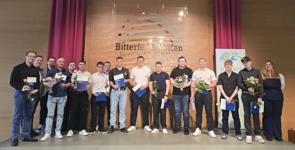 Das Bildungszentrum Wolfen-Bitterfeld e. V. gratuliert allen freigesprochenen Absolventinnen und Absolventen recht herzlich und dankt zugleich den Ausbilderinnen und Ausbildern, den Partnerbetrieben sowie den Familien für ihre Unterstützung.